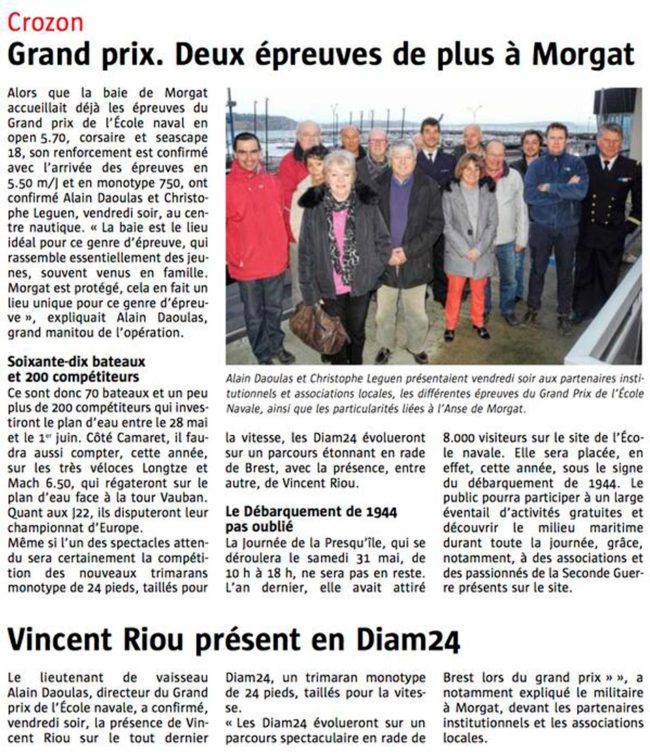 The composition of crews on Grand Prix GUYADER  6 crews of any horizons… Ramouna – FRA33 Barreur : HAINNEVILLE Eric Equipier : HAINNEVILLE Charles et HAINNEVILLE Maxime No Limit Marine – FRA 177 Barreur : Jean Pierre NICOL Equipier : Julien VILLION et Armand DE JACQUELOT Courrier Pop. – BEL 009 Barreur : Lionel LEMONCHOIS Equipier : Pierre Gewy (Punch pour…