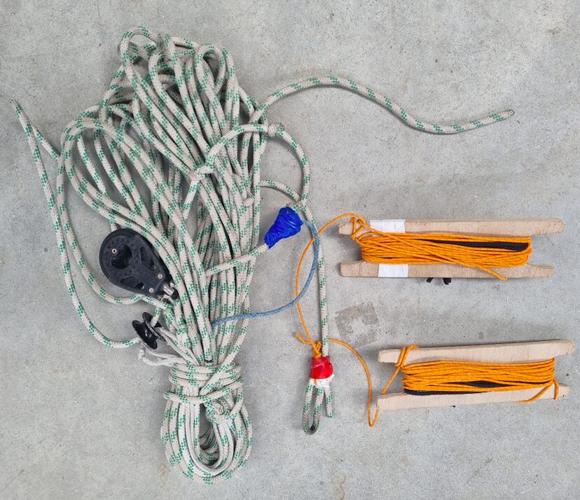 • 1 line equipped with a lashing to attach to the handle (block → friction ring → gennaker swivel)