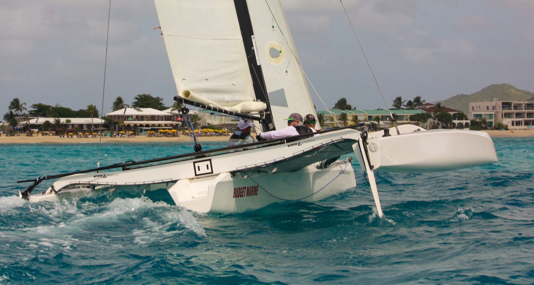 With one reef in the mainsail, competitors got off to a roaring start on a reach, turning north at an offset mark to circle the island clockwise toward the finish line in Grand Case Bay. Making well over 10 knots of boat speed, it didn’t take them long to arrive!