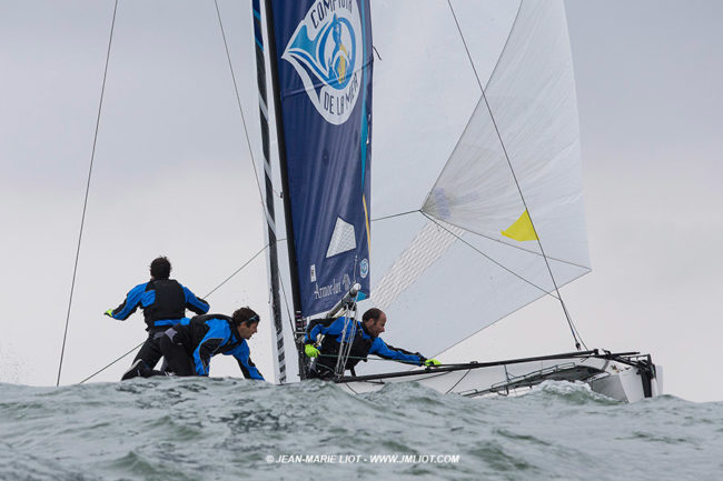 Aujourd’hui, les vingt-deux Diam 24 engagés sur le Grand Prix Guyader ont disputé cinq manches dans la Baie de Douarnenez, entre la plage des Sables Blancs et l’Ile Tristan. Divisée en deux groupes, la flotte s’est donc élancée ce matin dans 15 nœuds de vent instable avec des rafales atteignant les 20 nœuds. C’est la…