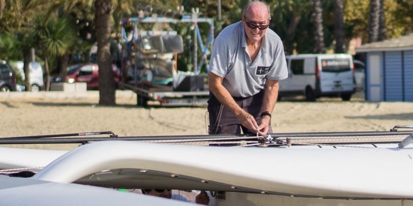 J’essaie de faire environ 25 jours de régate par an. Cela dépend beaucoup de la disponibilité de mes équipiers. Le bateau est très pratique pour être transporté d’un endroit à un autre, sur la remorque. Le seul challenge que j’ai, c’est de trouver des endroits où je peux mettre le bateau à l’eau. Ça peut-être au moyen d’une rampe ou d’une grue. Ça n’est pas très facile dans cette région. On trouve moins de multicoques que dans l’ouest car il est très difficile de trouver de la place pour stocker les bateaux. Je stock le mien à sec, à l’extérieur d’Antibes et je laisse la remorque avec le bateau, ce qui est très pratique.