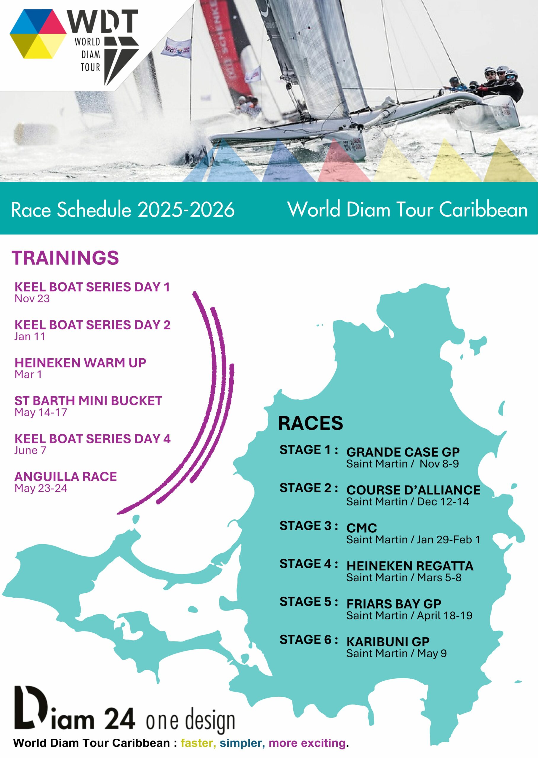 Depuis ses débuts sur le Tour Voile (2015-2021), le Diam24od continue d’inspirer la compétition en offrant des circuits annuels structurés et accessibles : les World Diam Tours. Ces circuits, organisés en France et aux Caraïbes, rassemblent les passionnés autour de 15 jours de navigation par saison, avec un mélange équilibré de sportivité, de challenge et de plaisir partagé.